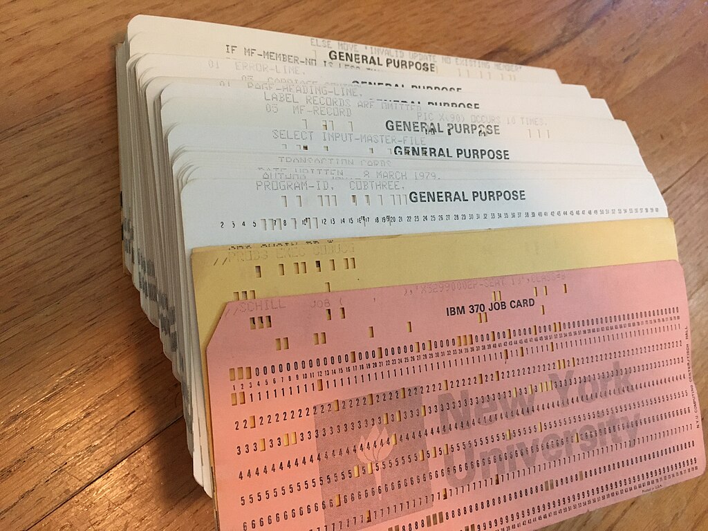 So begann die Geschichte vieler noch aktiver Legacy-Systeme: COBOL-Programme auf Lochkarten, hier an der New York University im Jahr 1979. © Jonathan Schilling, 2022 / Wikimedia Commons / CC BY-SA 4.0.