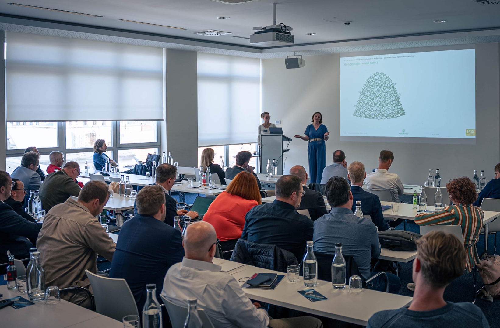 Vortrag von Melanie Mierau (HanseMerkur Reiseversicherung) und Kathrin Nölter (red6 enterprise software) auf der Fachkonferenz „Legacy IT in der Versicherungswirtschaft“ am 7. Mai 2025 (Foto: Versicherungsforen Leipzig)