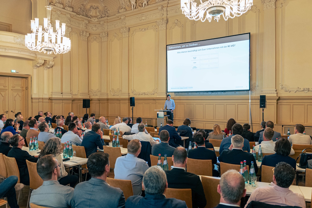 Keynote von Prof. Dr. André Liebscher (Hochschule Kaiserslautern) für die Fachkonferenzen KI und selbstlernende Systeme, IT-Sicherheitsmanagement und Legacy IT im Rahmen der IT-Woche der Versicherungsforen Leipzig 2025. (Foto: Versicherungsforen Leipzig)