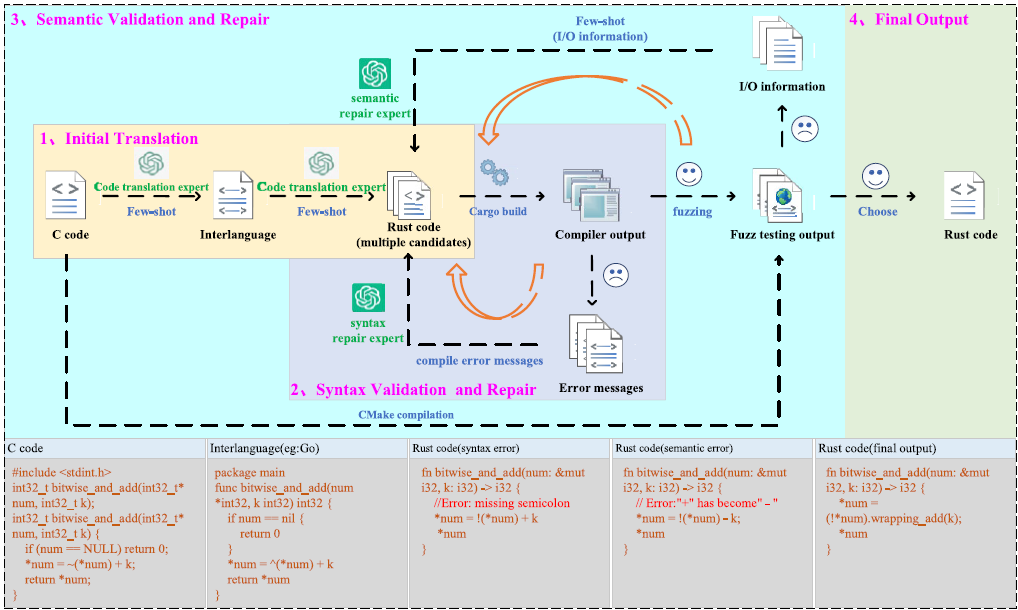 Vor diesem Hintergrund gewinnt Rust als speichersichere Alternative an Aufmerksamkeit. Die Diskussion um eine Migration von C nach Rust ist daher weniger eine Debatte über Programmiersprachen als über den Umgang mit technischer Schuld in kritischen Systemen. Ein aktuelles Forschungspaper im Journal Automated Software Engineering greift diese Fragestellung auf und untersucht, inwieweit sich C-Code mithilfe von Large Language Models automatisiert nach Rust übersetzen lässt.